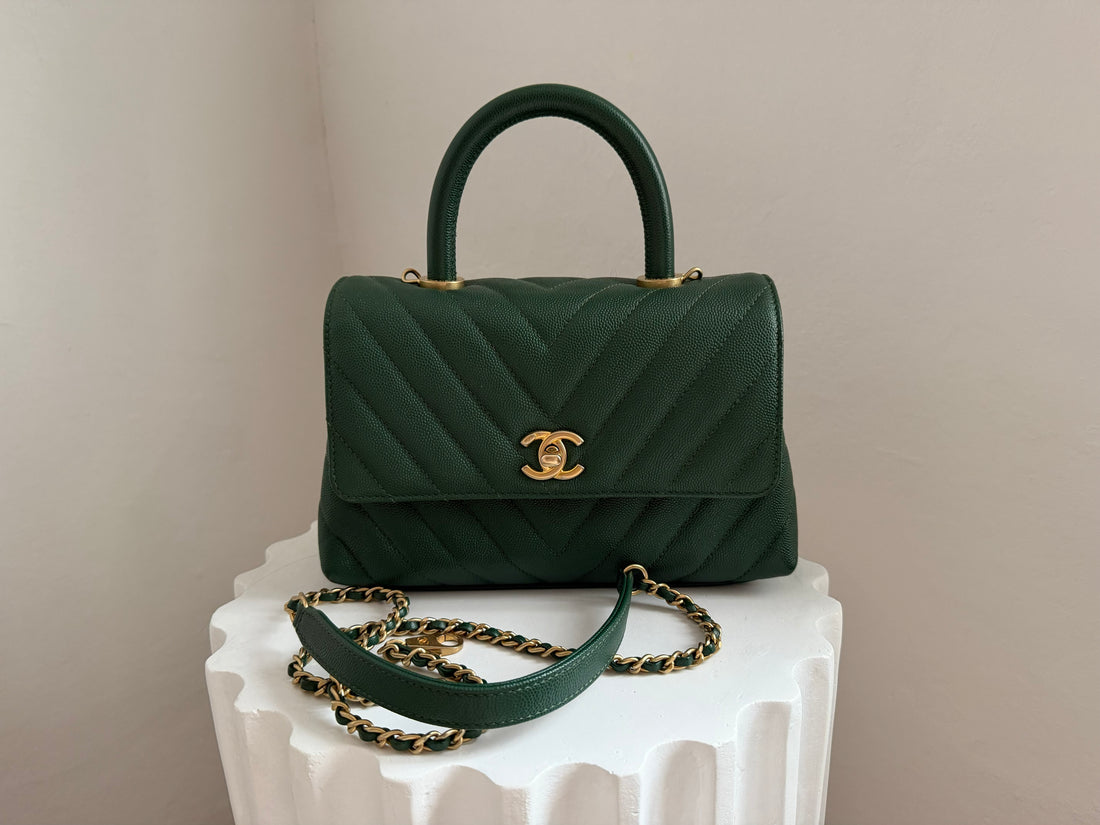 Chanel Small Coco Handle Handbag in chevron leather. Condition: overall very good condition, corners of the...