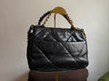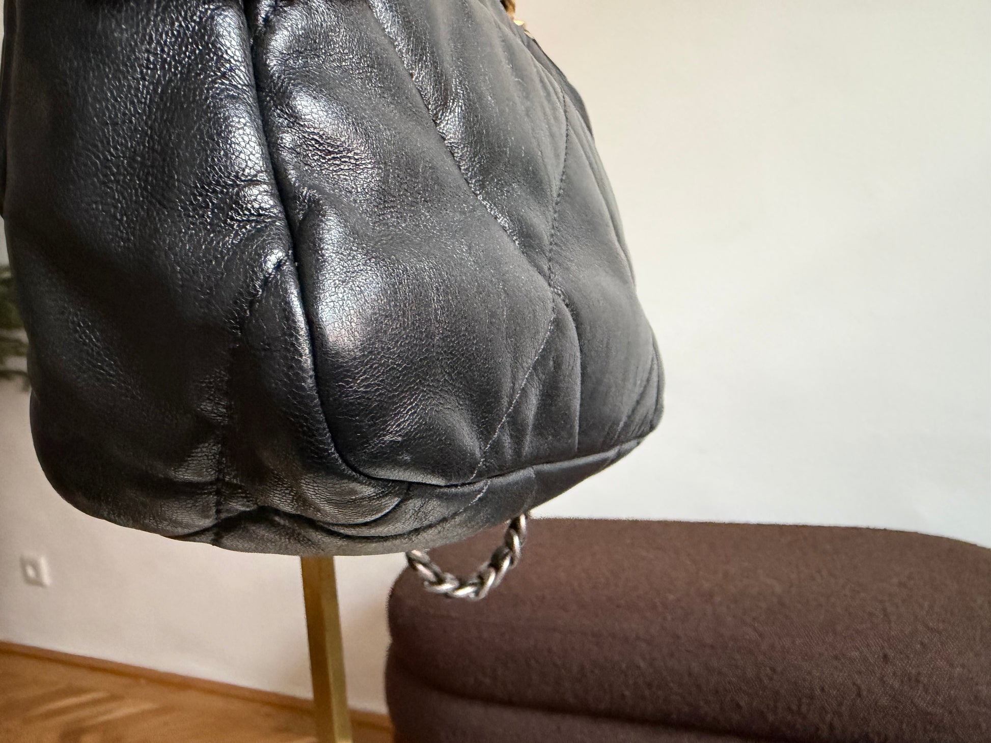Colour: Black quilted leather, metal fittings made of various metals.