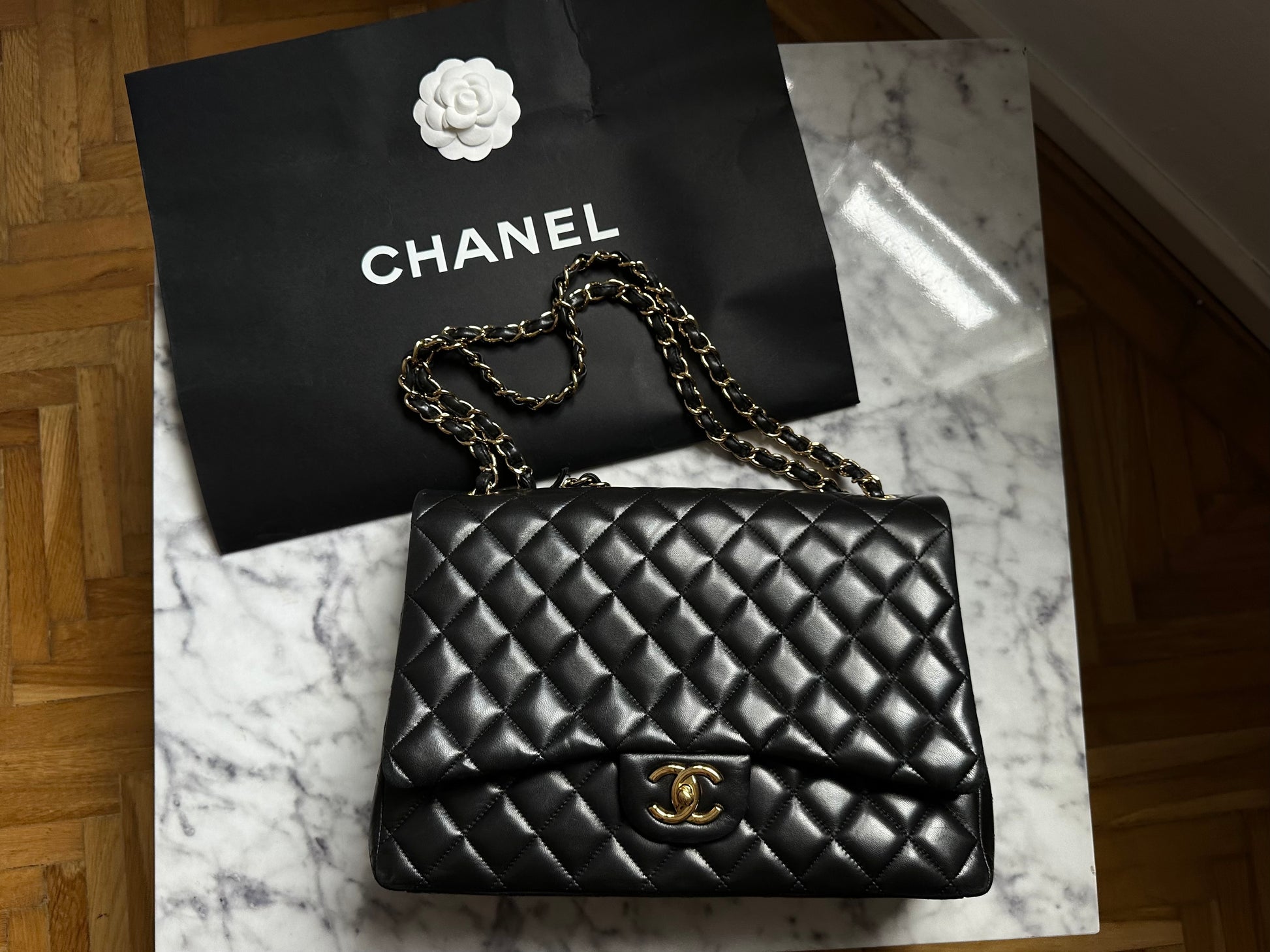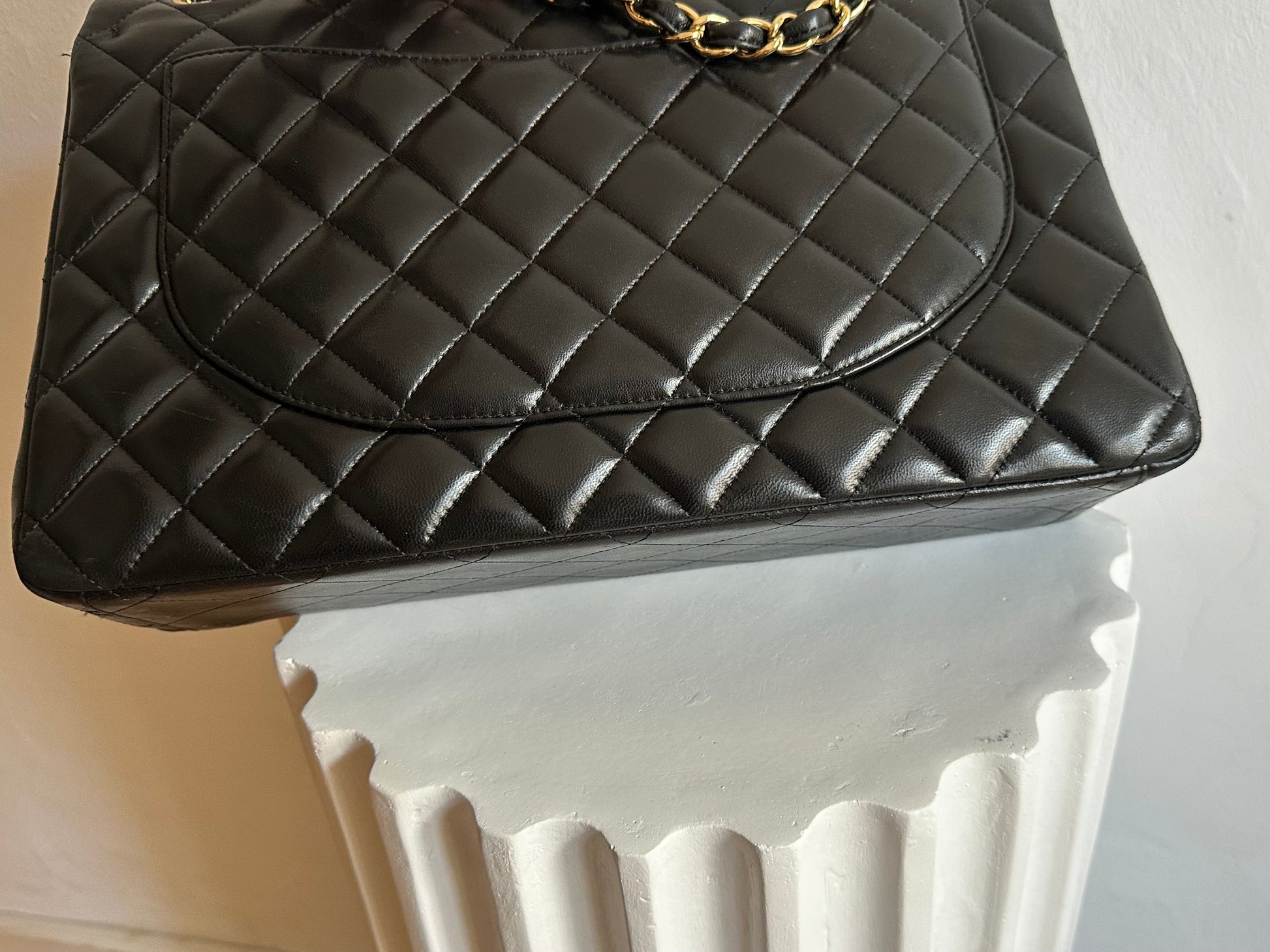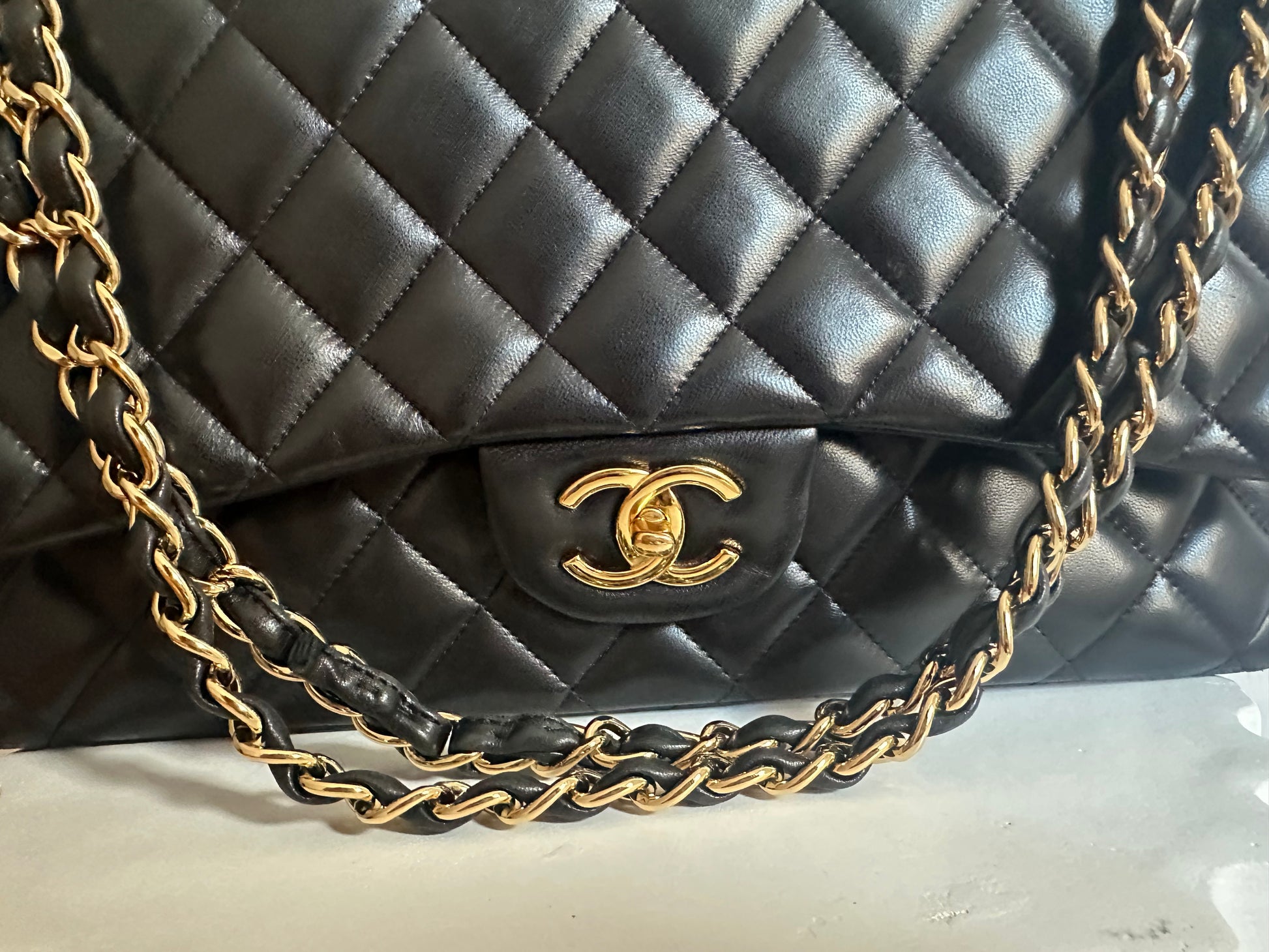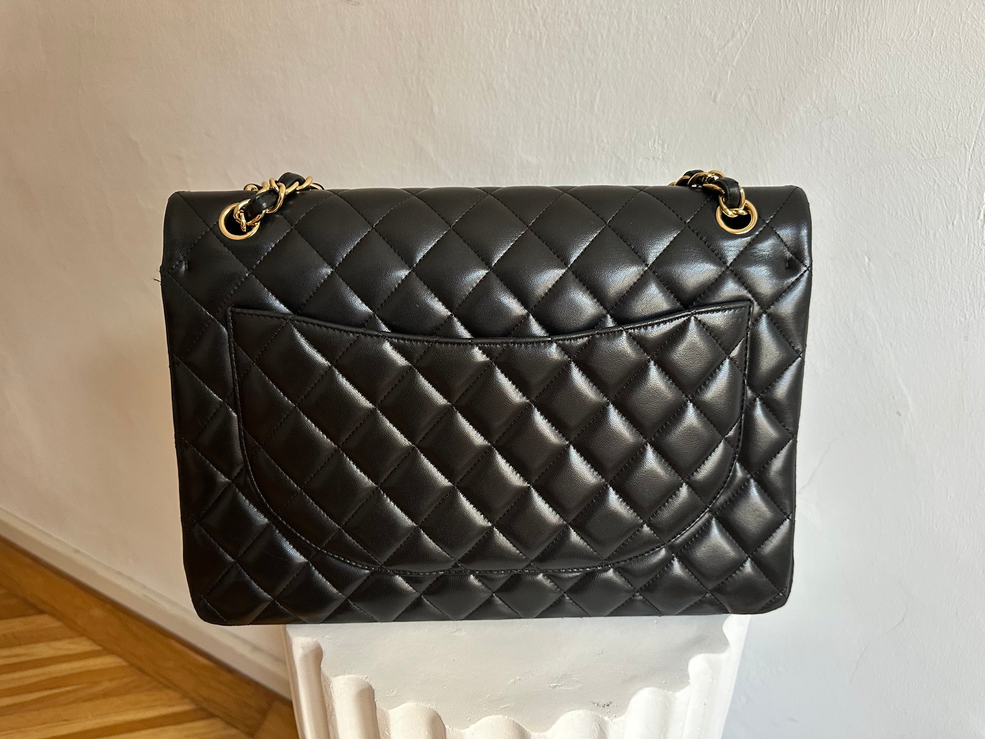 Chanel Black Lambskin leather Maxi Jumbo Classic Flap. Current retail price 11700€.